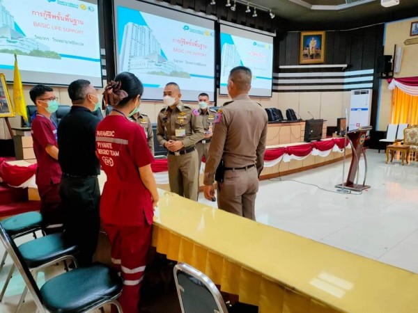 พ.ต.อ.สุรินทร์ ชาวศรีทอง รอง ผบก.อคฝ. (อัศวิน 5) พร้อมด้วย พ.ต.อ.ถิระวัฒน์ บุญยก (อัศวิน 1-1) ผกก.อารักขา1 บก.อคฝ. และข้าราชการตำรวจในสังกัด กก.อารักขา1ฯ จำนวน 120 นาย ร่วมพิธีเปิดอบรมโครงการปฐมพยาบาลเบื้องต้นและช่วยฟื้นคืนชีพขั้นพื้นฐาน (ปฐมพยาบาลทันการณ์ พ้นวิกฤตชีวิตได้) ณ ห้องประชุมใหญ่ บช.น.