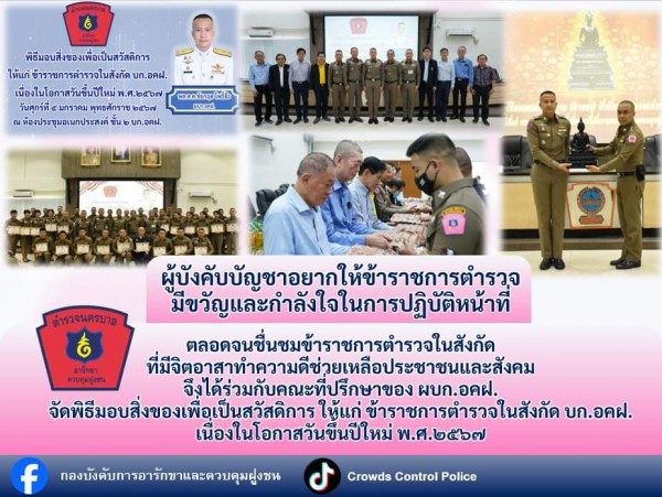 ผู้บังคับบัญชาอยากให้ข้าราชการตำรวจ มีขวัญและกำลังใจในการปฏิบัติหน้าที่ ตลอดจนชื่นชม ข้าราชการตำรวจในสังกัด ที่มีจิตอาสาทำความดีช่วยเหลือประชาชนและสังคม ประกอบกับแนวทางการบริหารราชการ ประจำปีงบประมาณ พ.ศ.๒๕๖๗ ของ ผบ.ตร. "QUICK WIN : เราดูแลคุณ เพื่อให้คุณไปดูแลประชาชน"