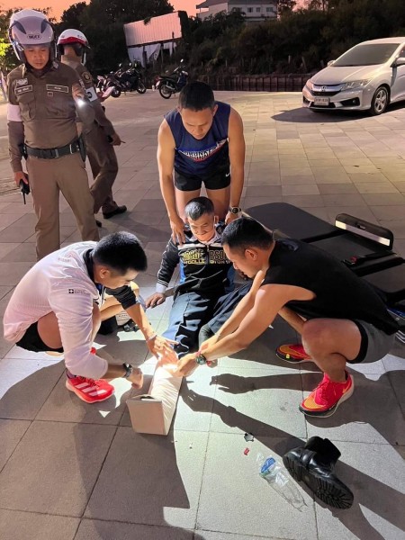 ตำรวจ อคฝ. ช่วยเหลือประชาชน ส.ต.ท.อภิชัยธวัช ประชานันท์ ส.ต.ท.เขมรัฐ อาจศรี ส.ต.ท.ปริญญา รักดำ ส.ต.ต.ธรรมศักดิ์ อุดรพันธุ์ ข้าราชการตำรวจสังกัด กองร้อยที่ 1 กก.ควบคุมฝูงชน 2 บก.อคฝ. ขณะออกกำลังกาย ได้พบเหตุ ว.40 จักรยานยนต์ล้มเอง จึงได้เข้าให้ความช่วยเหลือปฐมพยาบาลเบื้องต้น พร้อมนำส่งขึ้นรถกู้ภัย นำโรงพยาบาลเปาโล เพื่อรักษาต่อเรียบร้อย